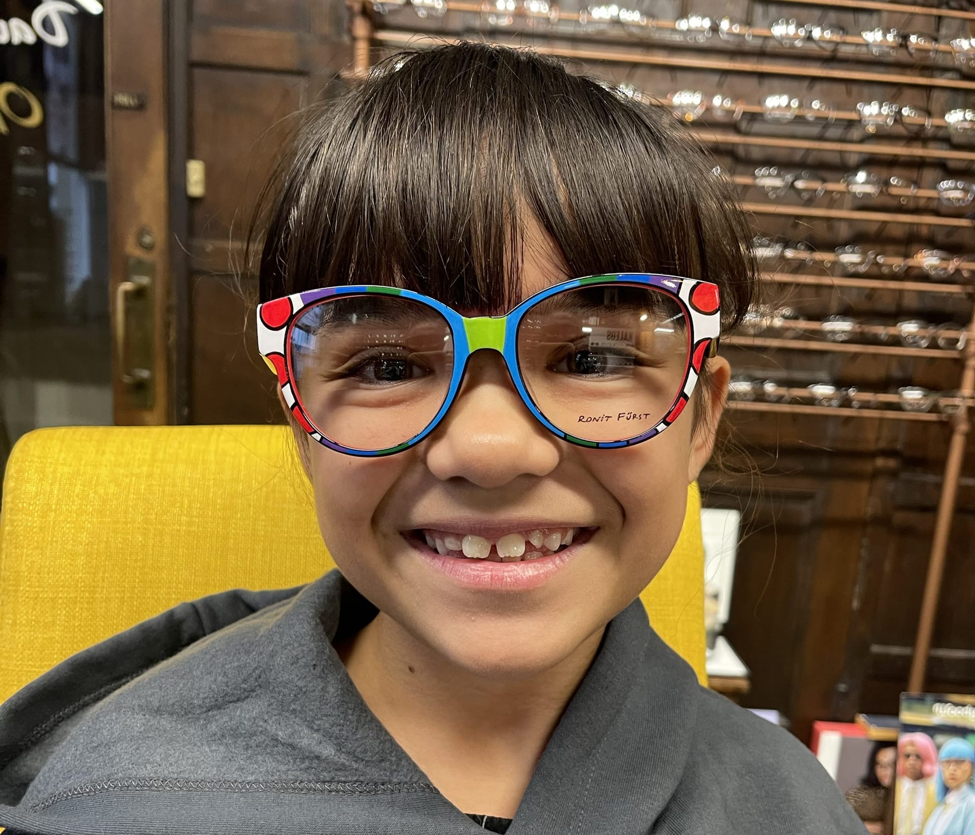 Hello, I’m Jasmin Grimes – and although I’m only 11 years old I’ve been part of the Grimes family optical world for as long as I can remember. In fact, some of you might recognise me from the David Grimes Opticians days, where I appeared in the local newspaper wearing a different pair of glasses every week. I didn’t realise it at the time, but I was already helping to make eyewear fun and fashionable, and I loved every minute of it!